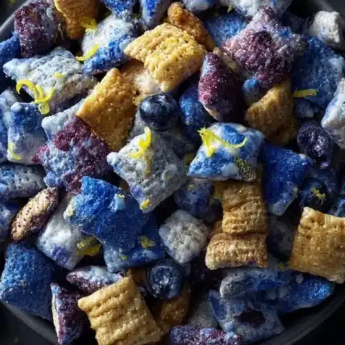 If you want to compare approaches, I took inspiration from the classic Blueberry-Lemon Muddy Buddies Party Mix, and I also like how this lemon muddy buddies version really leans into citrus. For another blueberry-lemon take with a similar “shake and set” feel, check out this lemon blueberry muddy buddies recipe too.