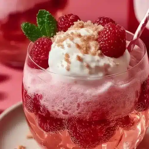 If you love desserts that feel special without any real effort, this Raspberry Rosé Float is the kind of recipe you’ll repeat all summer. The tart raspberry, the cold fizz, and that pretty foamy top come together fast—and it’s just as satisfying with a spoon as it is with a sip.