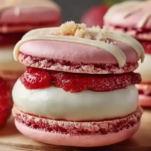 I developed this version while testing quick, clean cream cheese fillings that wouldn’t make shells soggy; using straight strawberry puree keeps the filling bright and thin enough to pipe, so you get a neat sandwich every time.