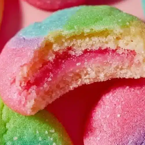 The first time I made these Jello sugar cookies I underestimated how much fun the dough would be to work with. The colors bloom into soft, marbled pastels as you knead in the gelatin powder, and the finished cookies have a tender, chewy center with a crackled top that still manages to stay moist — like a sugar cookie that learned to party.