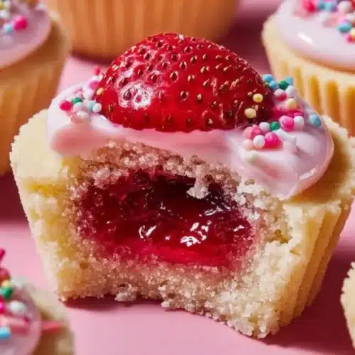 I wanted a cookie that felt special without rolling, cutting, or chilling—something you could bake for a last-minute get-together and still have that “wow, you made these?” look. Pressing a simple sugar cookie dough into mini muffin cups and filling them with strawberry jam was the fastest route to a dessert that looks detailed but stays totally doable.